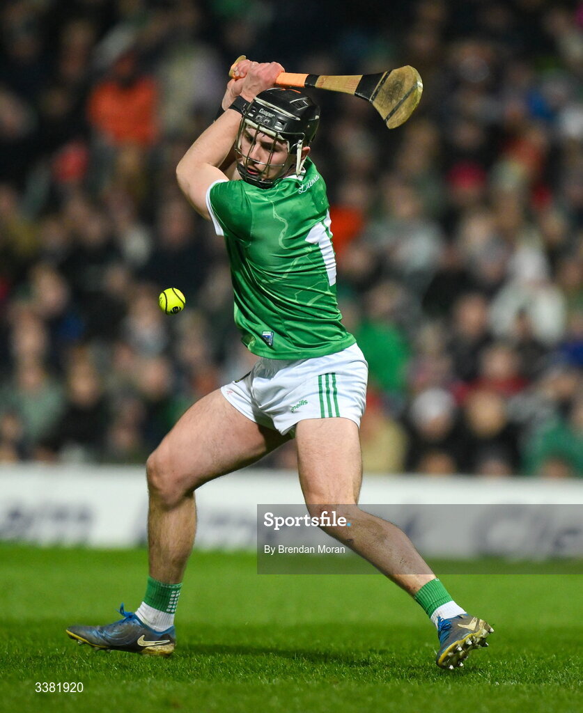 7 March 2026; Aidan O’Connor of Limerick scores his side's third goal from a penalty during the Allianz Hurling League Division 1A match between Limerick and Cork at TUS Gaelic Grounds in Limerick. Photo by Brendan Moran/Sportsfile
