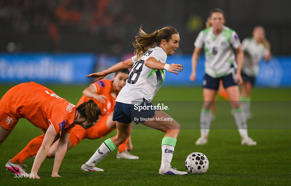 7 March 2026; Kyra Carusa of Republic of Ireland during the 2027 FIFA Women’s World Cup Qualifier match between the Netherlands and Republic of Ireland at Stadion Galgenwaard in Utrecht, Netherlands. Photo by Stephen McCarthy/Sportsfile