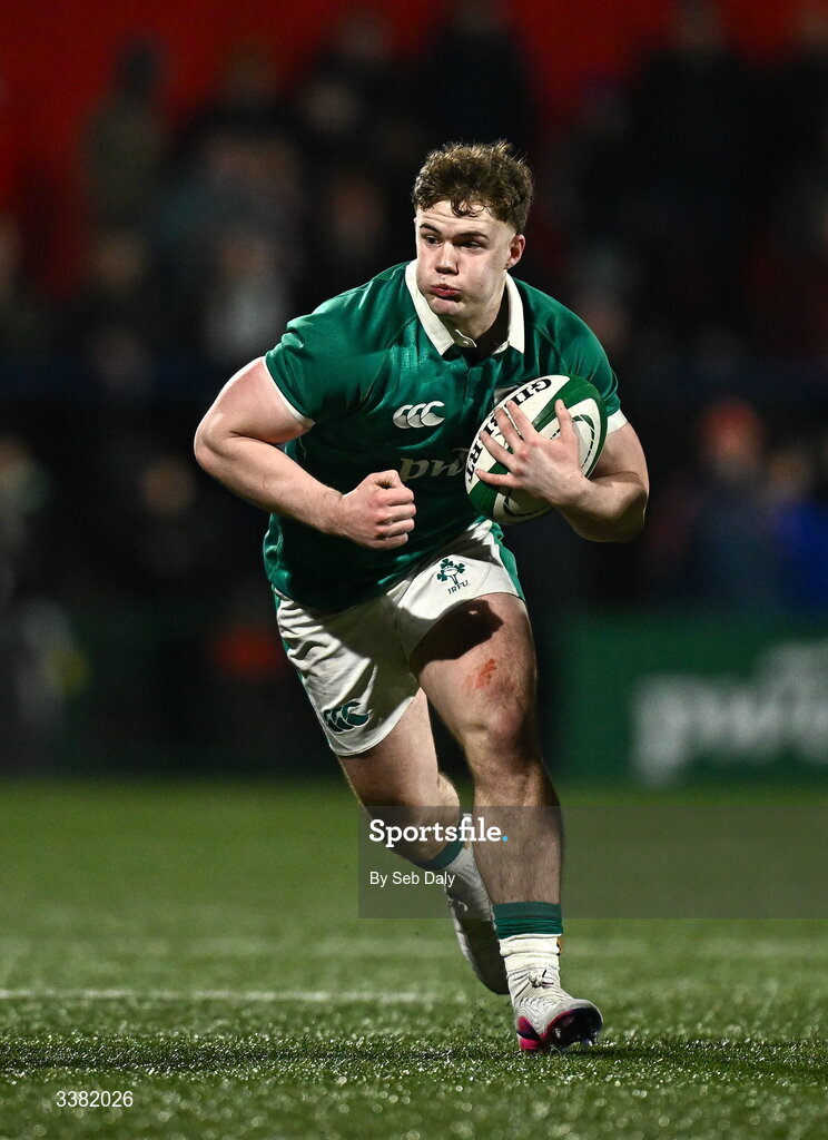 7 March 2026; James O'Leary of Ireland during the U20 Six Nations Rugby Championship match between Ireland and Wales at Virgin Media Park in Cork. Photo by Seb Daly/Sportsfile