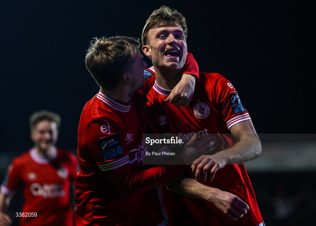 7 March 2026; Alex Nolan of Sligo Rovers celebrates his side's second goal during the SSE Airtricity Men's Premier Division match between Sligo Rovers and Drogheda United at The Showgrounds in Sligo. Photo by Paul Phelan/Sportsfile