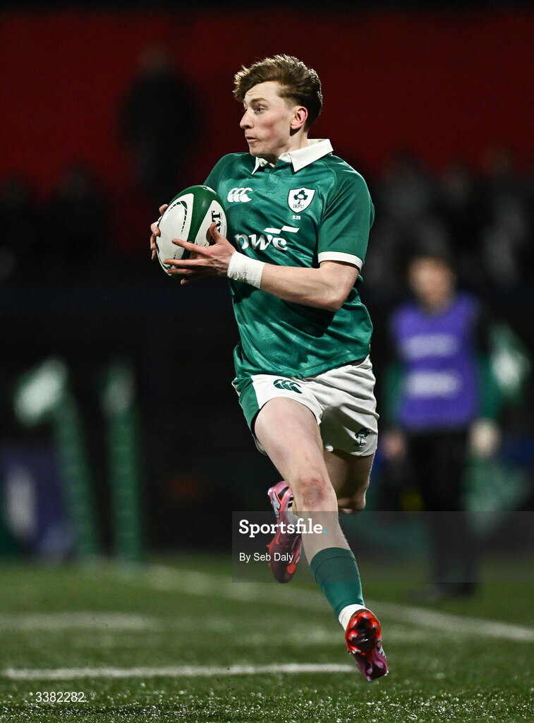 7 March 2026; Daniel Ryan of Ireland during the U20 Six Nations Rugby Championship match between Ireland and Wales at Virgin Media Park in Cork. Photo by Seb Daly/Sportsfile