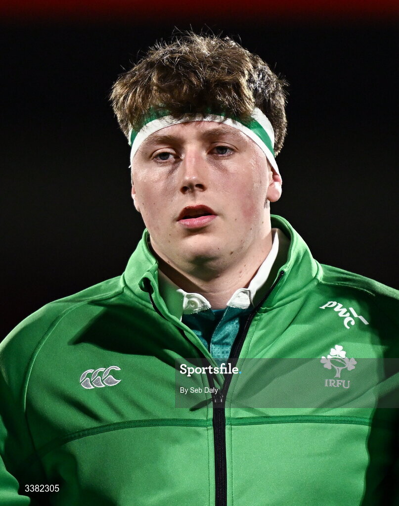 7 March 2026; Joe Finn of Ireland before the U20 Six Nations Rugby Championship match between Ireland and Wales at Virgin Media Park in Cork. Photo by Seb Daly/Sportsfile