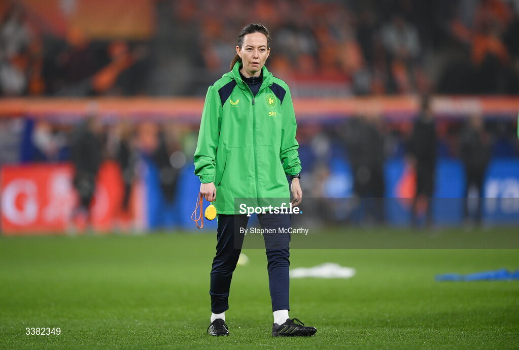 7 March 2026; Republic of Ireland assistant coach Amber Whiteley before the 2027 FIFA Women’s World Cup Qualifier match between the Netherlands and Republic of Ireland at Stadion Galgenwaard in Utrecht, Netherlands. Photo by Stephen McCarthy/Sportsfile