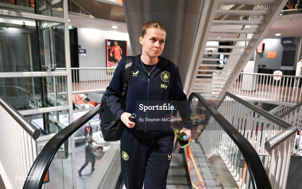 7 March 2026; Ruesha Littlejohn of Republic of Ireland arrives for the 2027 FIFA Women’s World Cup Qualifier match between the Netherlands and Republic of Ireland at Stadion Galgenwaard in Utrecht, Netherlands. Photo by Stephen McCarthy/Sportsfile