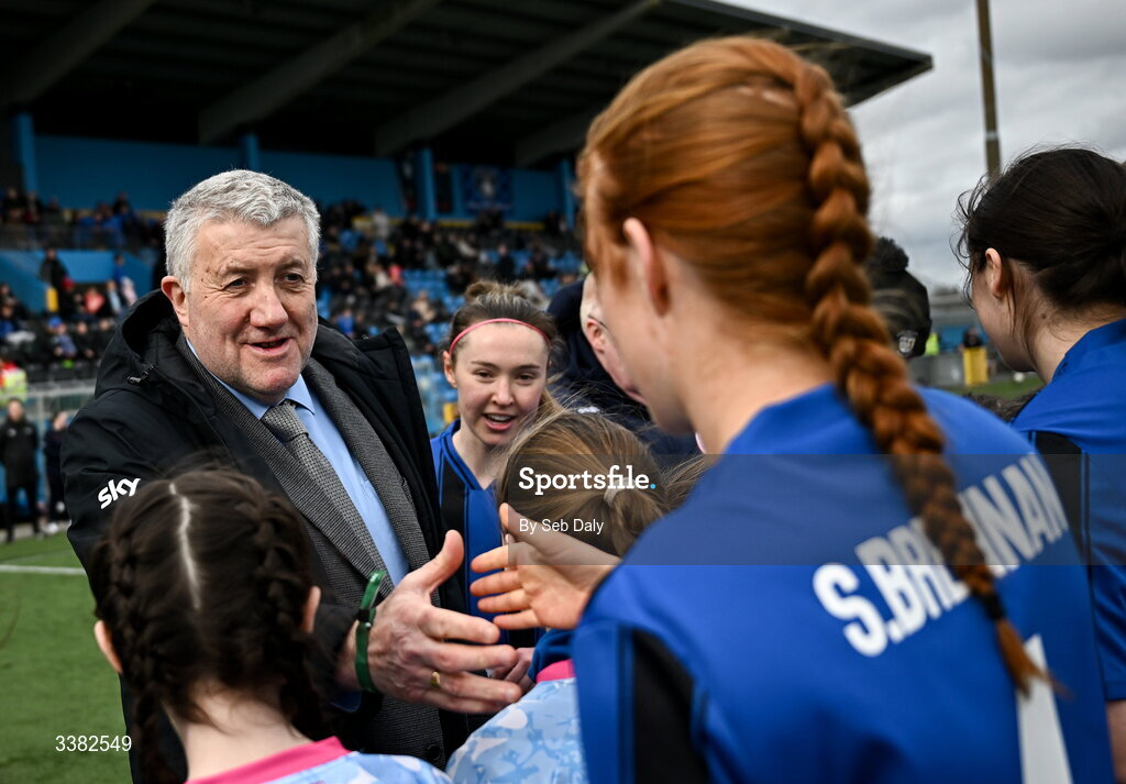 8 March 2026; FAI President Paul Cooke meets Athlone Town players before the 2026 Women's President's Cup final match between Athlone Town and Shelbourne at Athlone Town Stadium in Westmeath. Photo by Seb Daly/Sportsfile