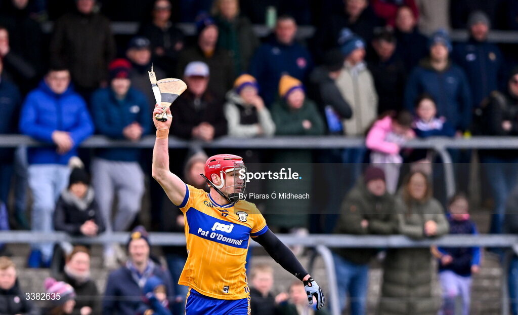 8 March 2026; John Conlon of Clare with a broken hurl during the Allianz Hurling League Division 1B match between Clare and Wexford at Zimmer Biomet Páirc Chíosóg in Ennis, Clare. Photo by Piaras Ó Mídheach/Sportsfile