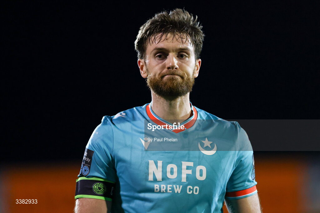 7 March 2026; Conor Keeley of Drogheda United reacts at full-time after the SSE Airtricity Men's Premier Division match between Sligo Rovers and Drogheda United at The Showgrounds in Sligo. Photo by Paul Phelan/Sportsfile