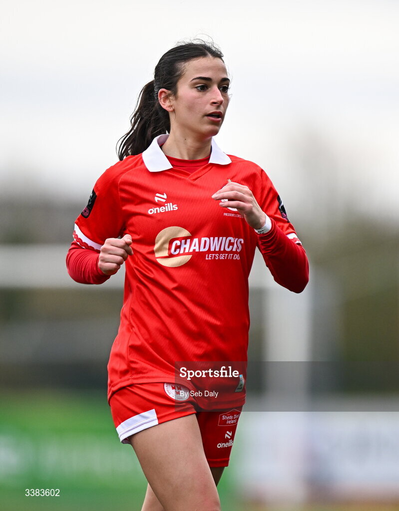 8 March 2026; Olivia Damico of Shelbourne during the 2026 Women's President's Cup final match between Athlone Town and Shelbourne at Athlone Town Stadium in Westmeath. Photo by Seb Daly/Sportsfile
