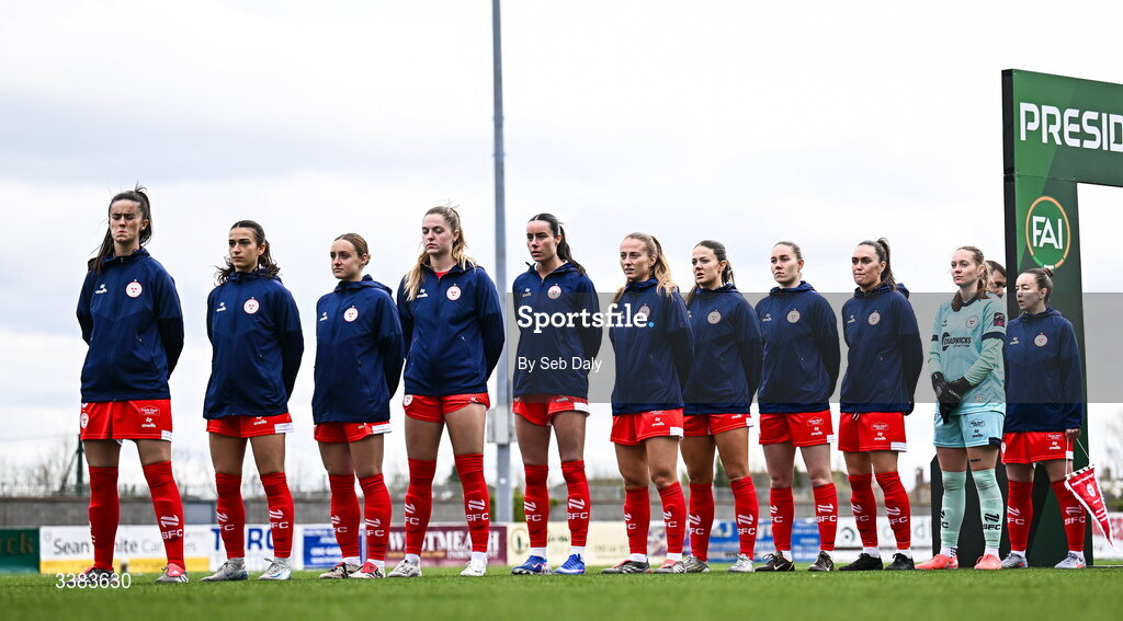 8 March 2026; Shelbourne players before the 2026 Women's President's Cup final match between Athlone Town and Shelbourne at Athlone Town Stadium in Westmeath. Photo by Seb Daly/Sportsfile