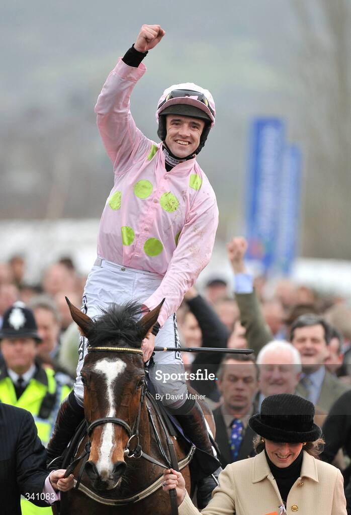 11 March 2009; Jockey Ruby Walsh celebrates after winning the Ballymore Novices' Hurdle Race on Mikael d'Haguenet. Cheltenham Racing Festival, Prestbury Park, Cheltenham, Gloucestershire, England. Picture credit: David Maher / SPORTSFILE