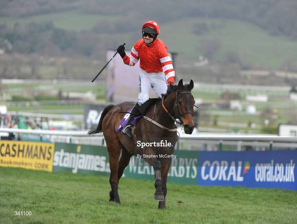 11 March 2009; Jockey Ruby Walsh celebrates on his way to winning the RSA Steeple Chase on Cooldine. Cheltenham Racing Festival, Prestbury Park, Cheltenham, Gloucestershire, England. Picture credit: Stephen McCarthy / SPORTSFILE