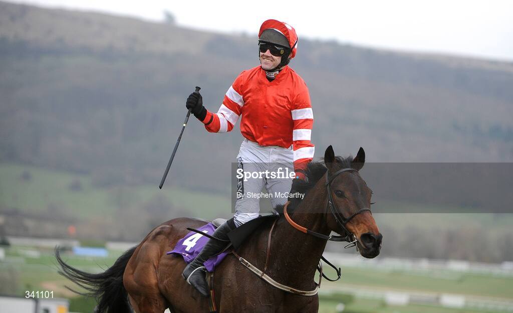 11 March 2009; Jockey Ruby Walsh celebrates on his way to winning the RSA Steeple Chase on Cooldine. Cheltenham Racing Festival, Prestbury Park, Cheltenham, Gloucestershire, England. Picture credit: Stephen McCarthy / SPORTSFILE