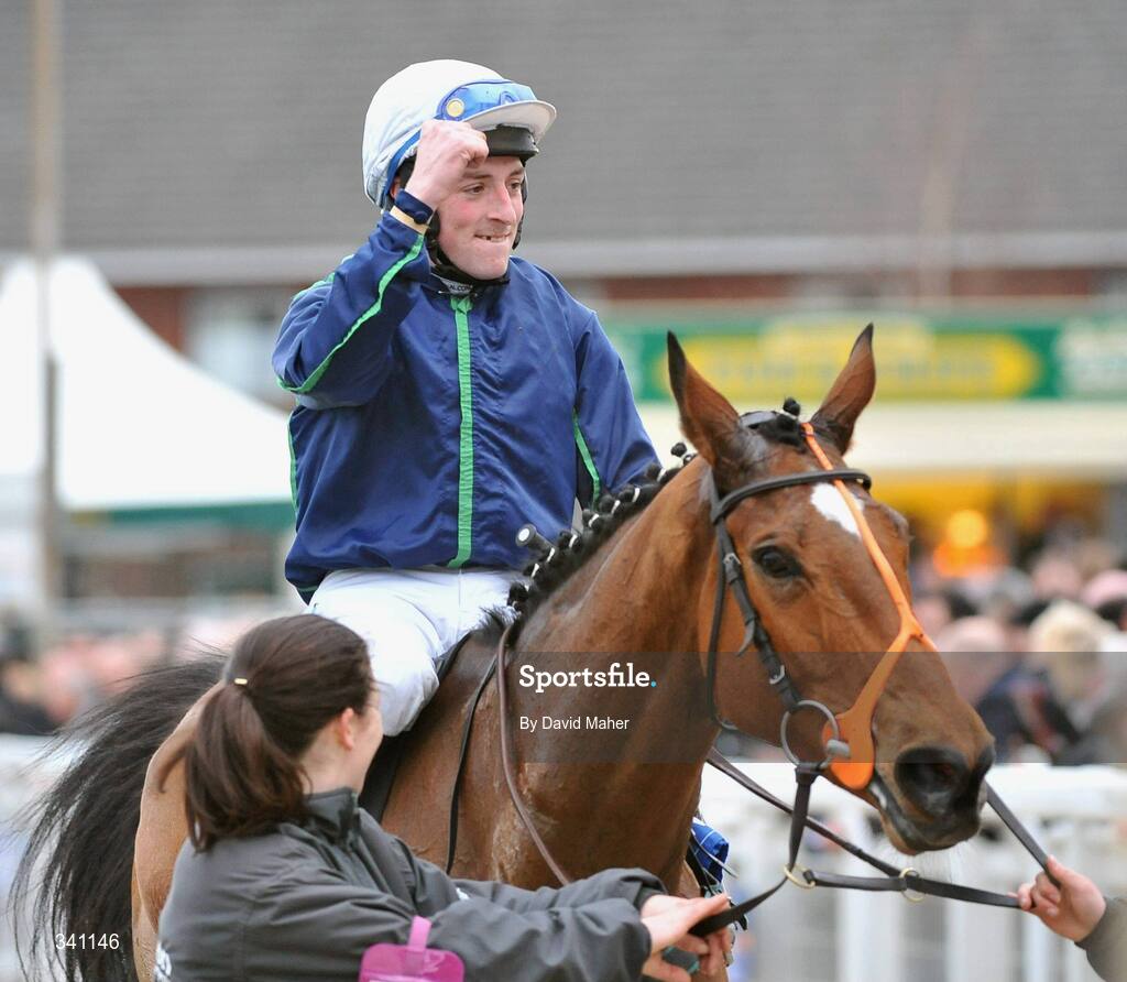 11 March 2009; Jockey Paddy Flood celebrates after winning the Coral Cup on Ninetieth Minute. Cheltenham Racing Festival, Prestbury Park, Cheltenham, Gloucestershire, England. Picture credit: David Maher / SPORTSFILE
