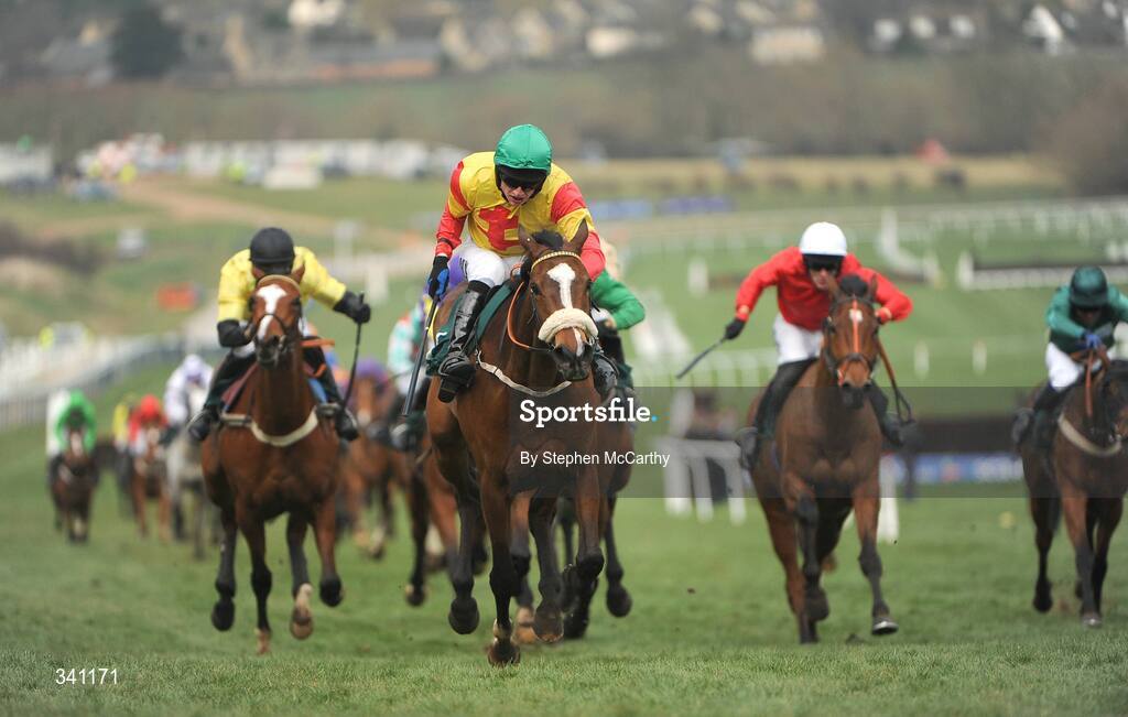 11 March 2009; Silk Affair, with Tom O'Brien up, on their way to winning the Fred Winter Juvenile Novices' Handicap Hurdle Race, from eventual third Saticon, with Robert Thornton up, left. Cheltenham Racing Festival, Prestbury Park, Cheltenham, Gloucestershire, England. Picture credit: Stephen McCarthy / SPORTSFILE