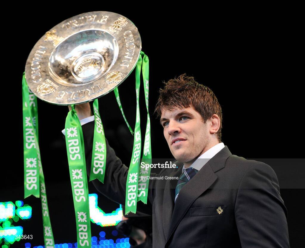 22 March 2009; Ireland's Donncha O'Callaghan celebrates with the Triple Crown on the teams return to Dublin after completing the Grand Slam. Ireland rugby squad homecoming. Dawson Street, Dublin. Picture credit: Diarmuid Greene / SPORTSFILE