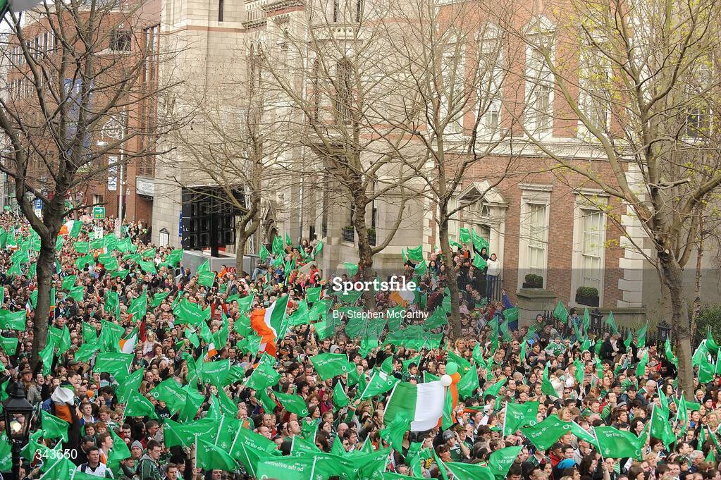 22 March 2009; A general view of the large crowd in Dawson Street to greet the Ireland teams return to Dublin after completing the Grand Slam. Ireland rugby squad homecoming. Dawson Street, Dublin. Picture credit: Stephen McCarthy / SPORTSFILE