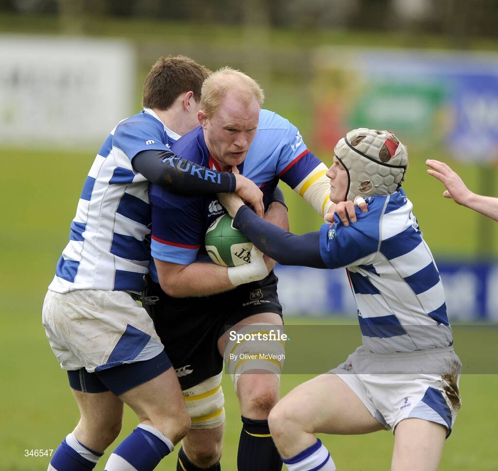 11 April 2009; Des Dillon, Blackrock, is tackled by Matt Maguire and Mel Ferry, Dungannon. AIB League Division 1, Dungannon v Blackrock, Stevenson Park, Dungannon, Co. Tyrone. Picture credit: Oliver McVeigh / SPORTSFILE *** Local Caption ***