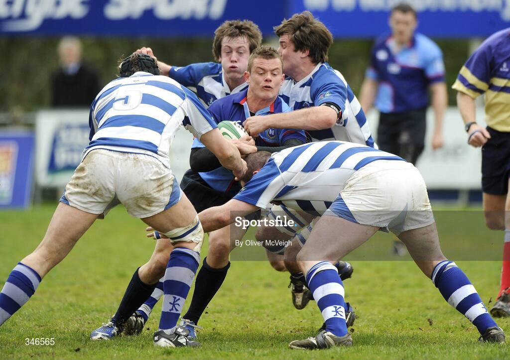 11 April 2009; David Moore, Blackrock, in action against Michael Rainey, Derek Hall and Ali Birch, Dungannon. AIB League Division 1, Dungannon v Blackrock, Stevenson Park, Dungannon, Co. Tyrone. Picture credit: Oliver McVeigh / SPORTSFILE *** Local Caption ***
