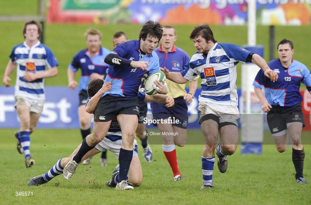 11 April 2009; Simon Morrissey, Blackrock, in action against Paul Magee and Neville Magee, Dungannon. AIB League Division 1, Dungannon v Blackrock, Stevenson Park, Dungannon, Co. Tyrone. Picture credit: Oliver McVeigh / SPORTSFILE *** Local Caption ***