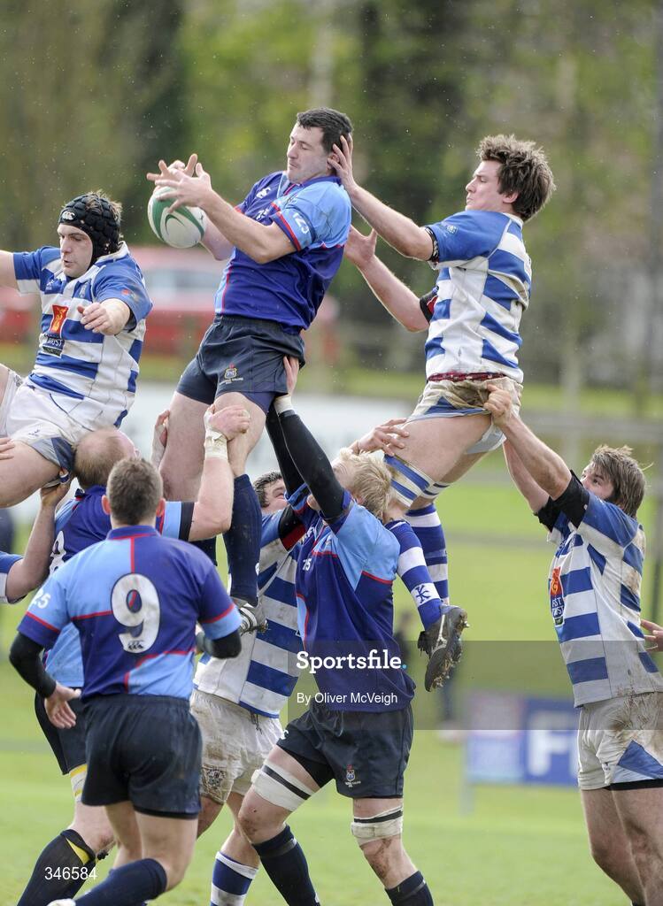 11 April 2009; Alan Henry, Blackrock, in action in the lineout against Michael Rainey and Ali Birch, Dungannon. AIB League Division 1, Dungannon v Blackrock, Stevenson Park, Dungannon, Co. Tyrone. Picture credit: Oliver McVeigh / SPORTSFILE *** Local Caption ***