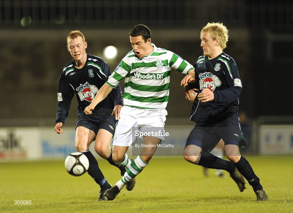 1 May 2009; Tadhg Purcell, Shamrock Rovers, in action against Chris Foran, right, and Chris Shields, Bray Wanderers. League of Ireland Premier Division, Shamrock Rovers v Bray Wanderers, Tallaght Stadium, Dublin. Picture credit: Stephen McCarthy / SPORTSFILE