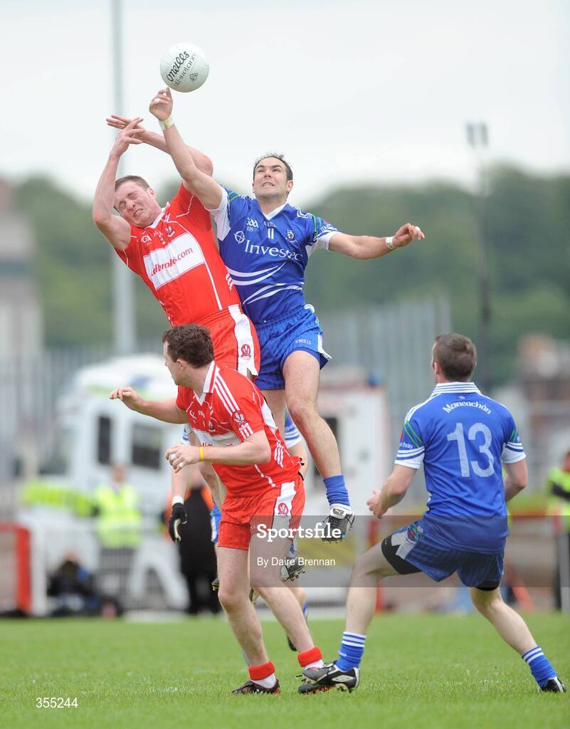 24 May 2009; Paul Finlay, Monaghan, contests a high ball with Joe Diver, Derry. Ulster GAA Football Senior Championship Quarter-Final, Derry v Monaghan, Celtic Park, Derry. Picture credit: Daire Brennan / SPORTSFILE