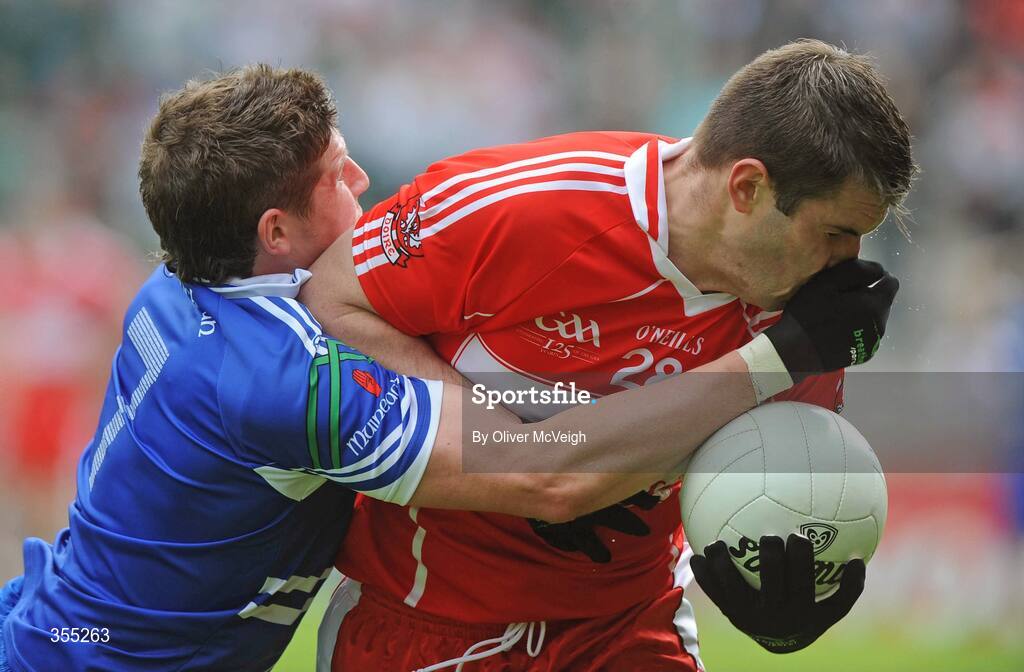 24 May 2009; Mark Lynch, Derry, in action against Darren Hughes, Monaghan. Ulster GAA Football Senior Championship Quarter-Final, Derry v Monaghan, Celtic Park, Derry. Picture credit: Oliver McVeigh / SPORTSFILE