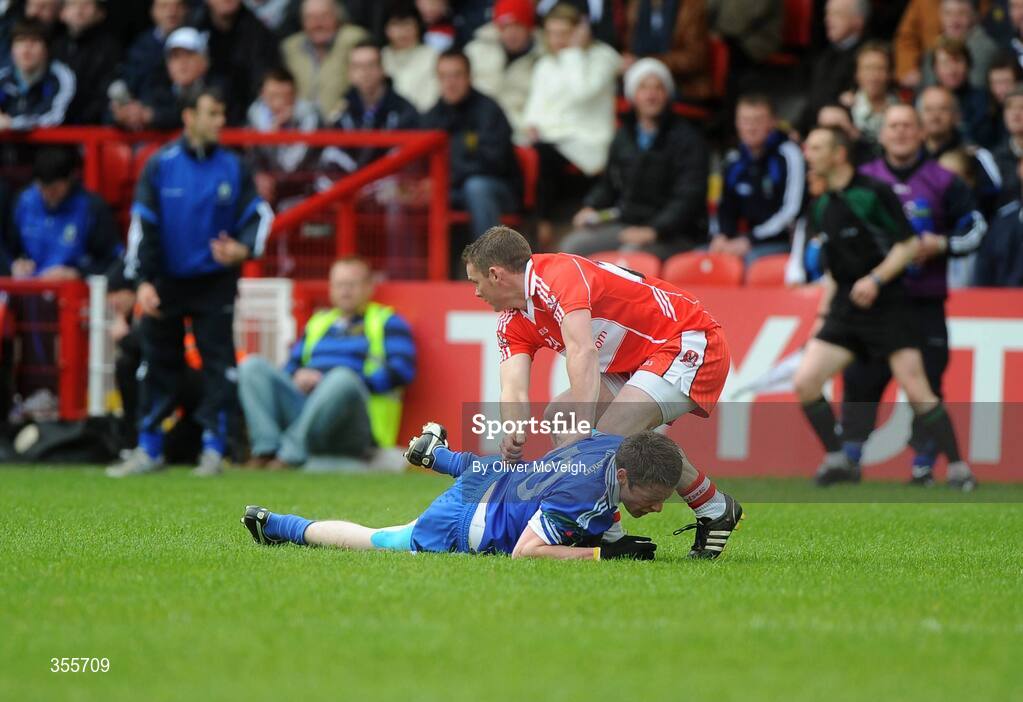 24 May 2009; Brian Mullan, Derry, and Conor McManus, Monaghan, after a second half incident. Ulster GAA Football Senior Championship Quarter-Final, Derry v Monaghan, Celtic Park, Derry. Picture credit: Oliver McVeigh / SPORTSFILE
