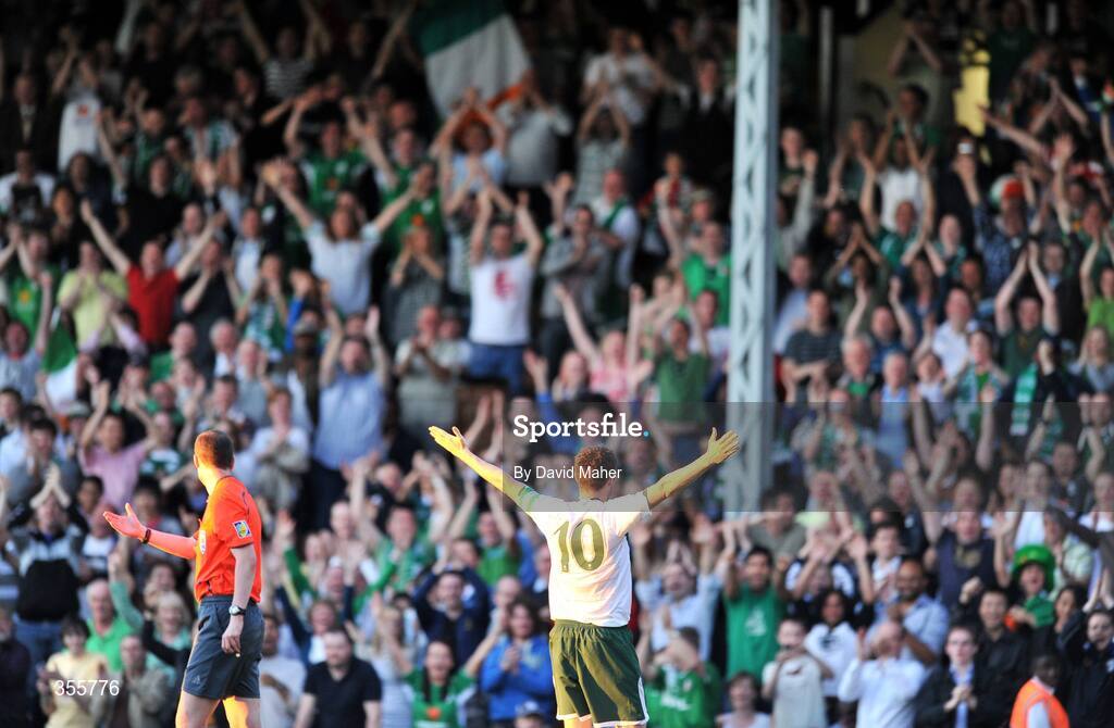 29 May 2009; Robbie Keane, Republic of Ireland, celebrates after scoring his side's first goal. Friendly International, Republic of Ireland v Nigeria, Craven Cottage, Fulham, London, England. Picture credit: David Maher / SPORTSFILE