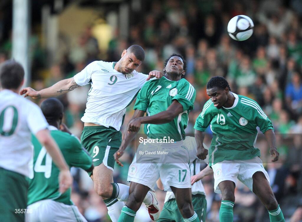 29 May 2009; Leon Best, Republic of Ireland, in action against Ayodele Adeleye, centre and Sam Sodje, Nigeria. Friendly International, Republic of Ireland v Nigeria, Craven Cottage, Fulham, London, England. Picture credit: David Maher / SPORTSFILE