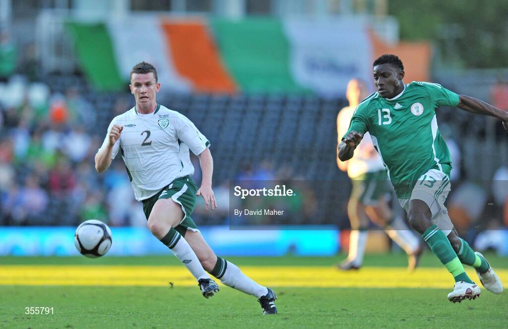 29 May 2009; Kevin Foley, Republic of Ireland, in action against Joseph Akpala, Nigeria. Friendly International, Republic of Ireland v Nigeria, Craven Cottage, Fulham, London, England. Picture credit: David Maher / SPORTSFILE