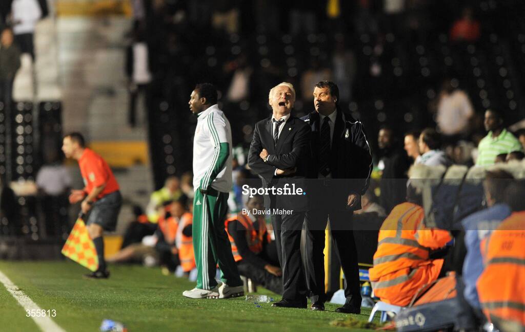 29 May 2009; Republic of Ireland manager Giovanni Trapattoni and his assistant Marco Tardelli during the game. Friendly International, Republic of Ireland v Nigeria, Craven Cottage, Fulham, London, England. Picture credit: David Maher / SPORTSFILE