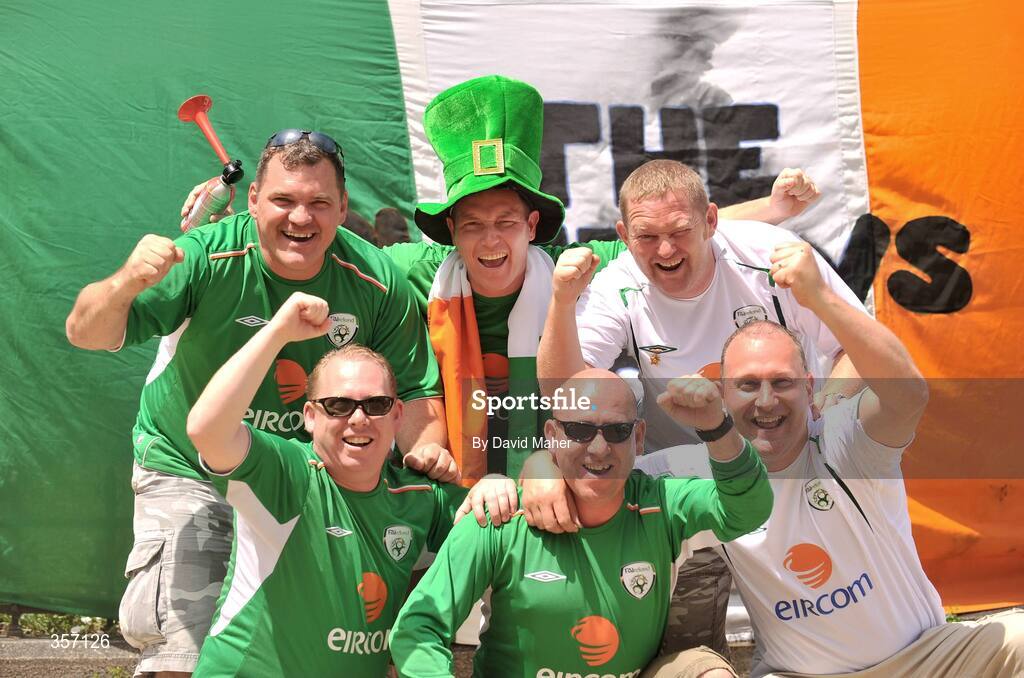 6 June 2009; Republic of Ireland supporters, left to right, Dave Whelan, Dave Delaney, Ciaran Whelan, Eddie Bergin, John McCarton and Frankie McKeown, all from Tallaght, Co. Dublin in Sofia ahead of the 2010 FIFA World Cup Qualifier against Bulgaria. Sofia, Bulgaria. Picture credit: David Maher / SPORTSFILE