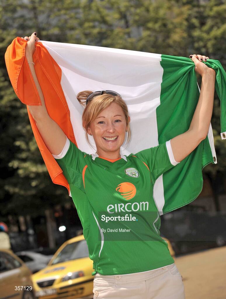 6 June 2009; Republic of Ireland supporter Claire McDonnell, from Ballylanders, Co. Limerick in Sofia ahead of the 2010 FIFA World Cup Qualifier against Bulgaria. Sofia, Bulgaria. Picture credit: David Maher / SPORTSFILE