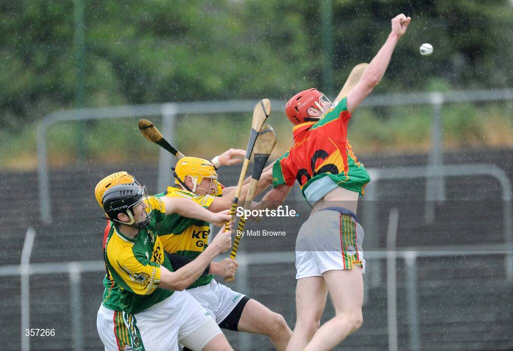 6 June 2009; Eddie Byrne, 26, and Robert Foley, Carlow, in action against Aidan Healy and Tom Murnane, Kerry. Christy Ring Cup Semi-Final, Carlow v Kerry, Dr. Cullen Park, Carlow. Picture credit: Matt Browne / SPORTSFILE