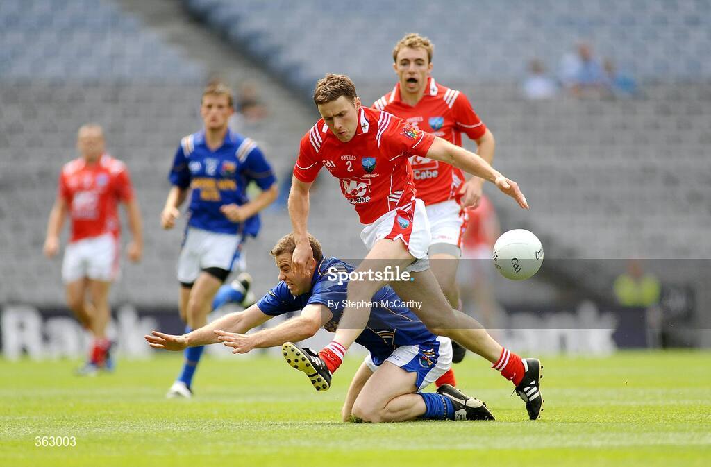 28 June 2009; Tomas Costello, Louth, in action against Pauraic Shanley, Longford. GAA Football Leinster Junior Championship Final, Louth v Longford, Croke Park, Dublin. Picture credit: Stephen McCarthy / SPORTSFILE