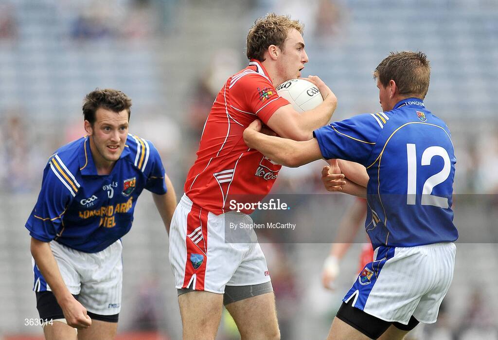 28 June 2009; Shane Brennan, Louth, in action against Trevor Glendenning, left, and Paul McKeon, Longford. GAA Football Leinster Junior Championship Final, Louth v Longford, Croke Park, Dublin. Picture credit: Stephen McCarthy / SPORTSFILE