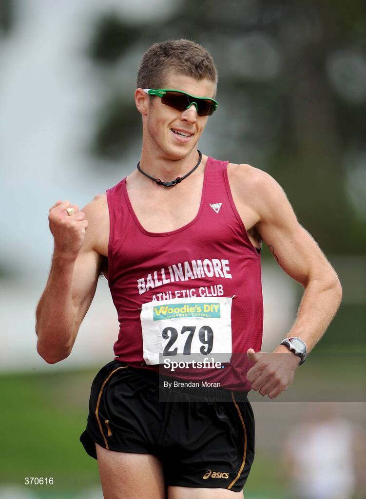 2 August 2009; Colin Griffin, Ballinamore AC, celebrates after finishing second in the Men's 10,000m Walk. Woodie's DIY / AAI National Senior Track & Field Championships. Morton Stadium, Santry, Dublin. Picture credit: Brendan Moran / SPORTSFILE