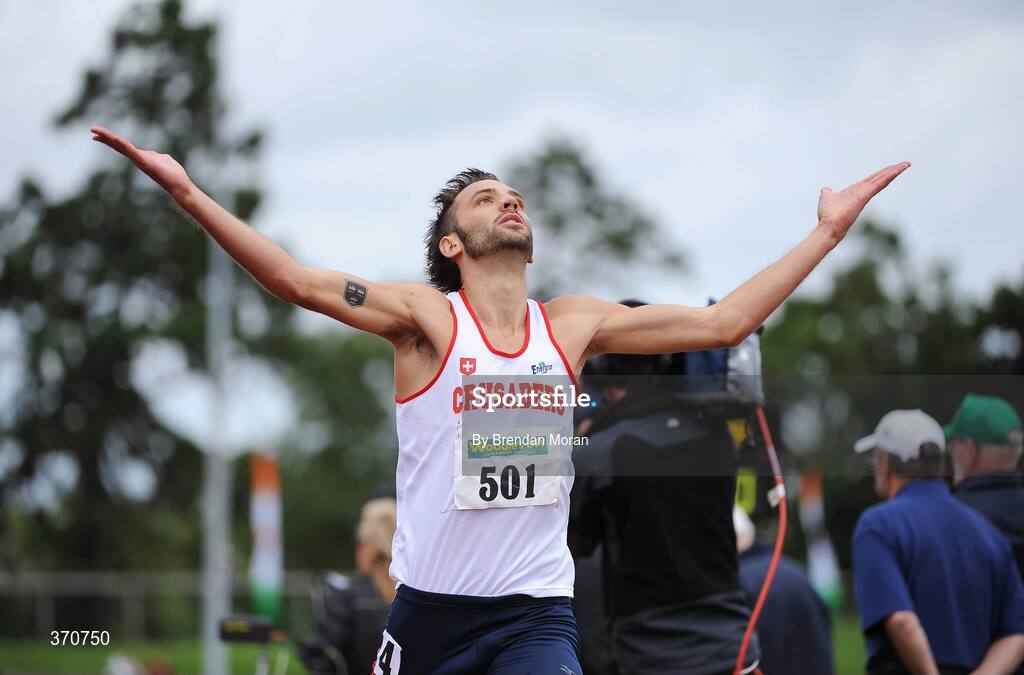 2 August 2009; Thomas Chamney, Crusaders AC, celebrates after his victory in the Men's 800m Final. Woodie's DIY / AAI National Senior Track & Field Championships. Morton Stadium, Santry, Dublin. Picture credit: Brendan Moran / SPORTSFILE