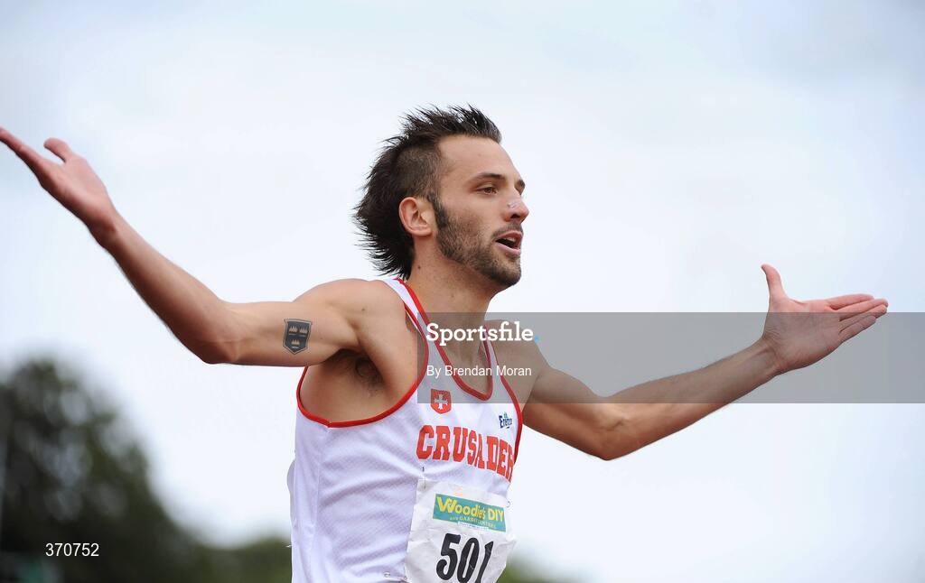 2 August 2009; Thomas Chamney, Crusaders AC, celebrates after his victory in the Men's 800m Final. Woodie's DIY / AAI National Senior Track & Field Championships. Morton Stadium, Santry, Dublin. Picture credit: Brendan Moran / SPORTSFILE