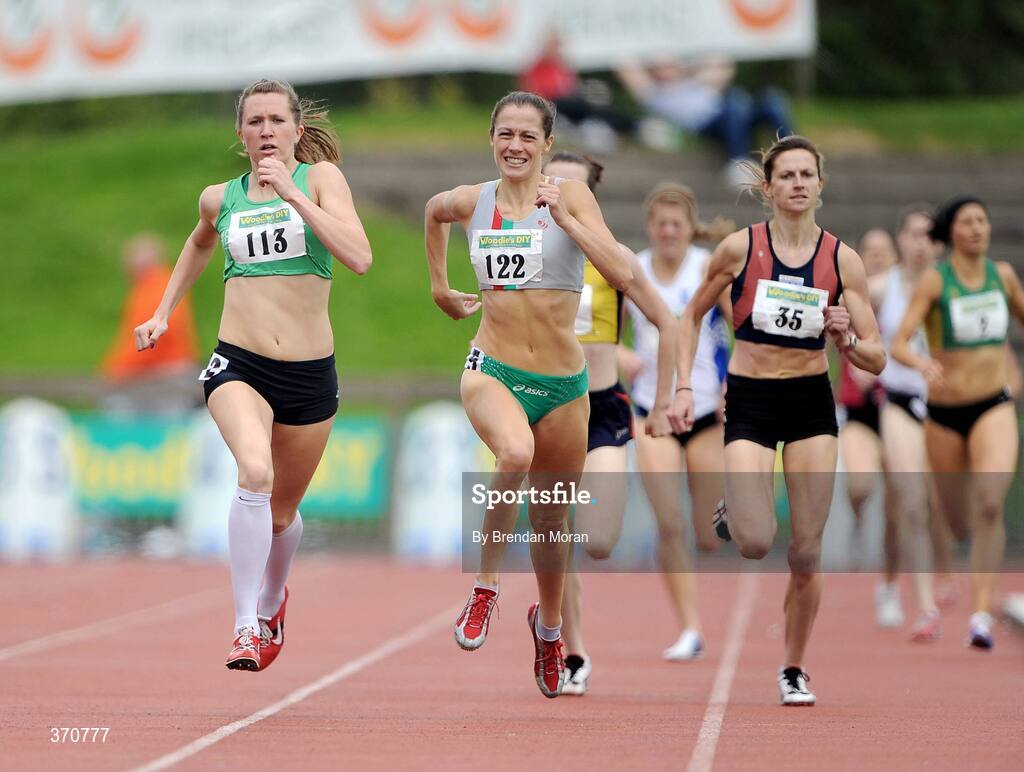 2 August 2009; Roseanne Galligan, 113, Newbridge AC, comes home ahead of eventual second Kelly McNiece, of Lisburn AC, and eventual fourth Deirdre Byrne, 35, Sli Cualann AC, to win the Women's 800m Final. Woodie's DIY / AAI National Senior Track & Field Championships. Morton Stadium, Santry, Dublin. Picture credit: Brendan Moran / SPORTSFILE