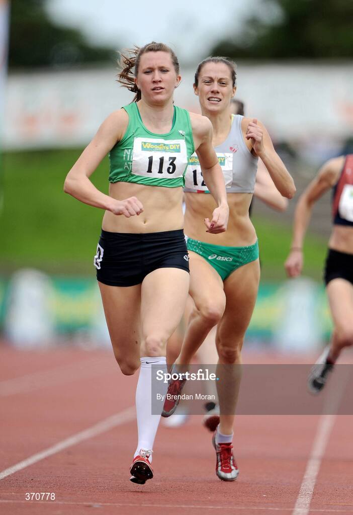 2 August 2009; Roseanne Galligan, 113, Newbridge AC, comes home ahead of eventual second Kelly McNiece, of Lisburn AC, to win the Women's 800m Final. Woodie's DIY / AAI National Senior Track & Field Championships. Morton Stadium, Santry, Dublin. Picture credit: Brendan Moran / SPORTSFILE