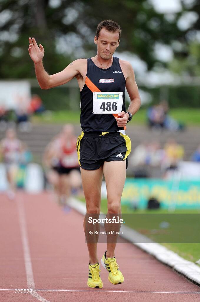 2 August 2009; Alistair Cragg, Clonliffe Harriers AC, celebrates winning the Men's 5000m Final. Woodie's DIY / AAI National Senior Track & Field Championships. Morton Stadium, Santry, Dublin. Picture credit: Brendan Moran / SPORTSFILE