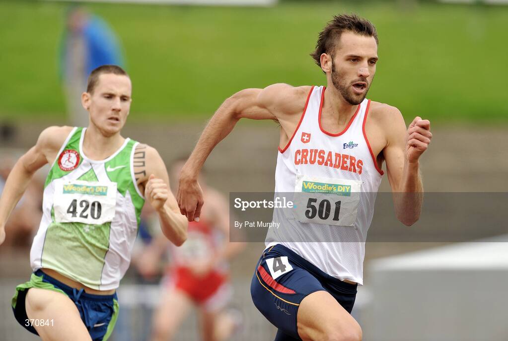 2 August 2009; Thomas Chamney, Crusaders AC, races clear of David Campbell, St. Coca's AC, left, on his way to winning the Men's 800m final during the Woodie's DIY / AAI National Senior Track & Field Championships. Morton Stadium, Santry, Dublin. Picture credit: Pat Murphy / SPORTSFILE