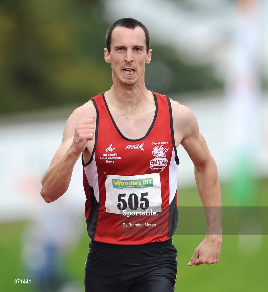 2 August 2009; Tom Carey, Limerick AC, crosses the line to win the Men's 400m Hurdles Final. Woodie's DIY / AAI National Senior Track & Field Championships. Morton Stadium, Santry, Dublin. Picture credit: Brendan Moran / SPORTSFILE