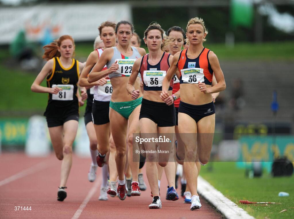 2 August 2009; Roisin McGettigan, 36, Sli Cualann AC, leads eventual winner Deirdre Byrne, 35, Ali Cualann AC, during the Women's 1500m Final. Woodie's DIY / AAI National Senior Track & Field Championships. Morton Stadium, Santry, Dublin. Picture credit: Brendan Moran / SPORTSFILE