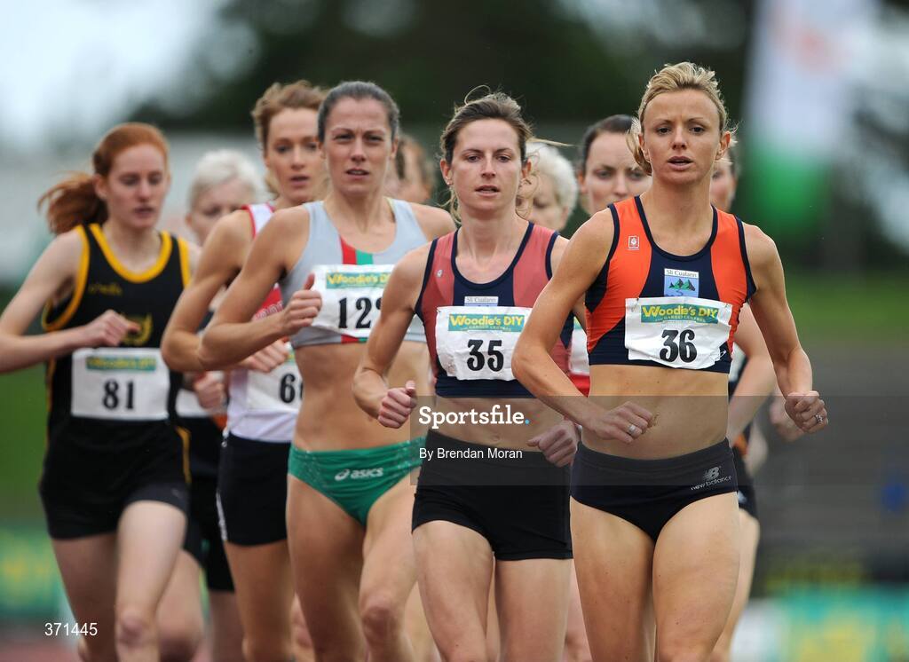 2 August 2009; Roisin McGettigan, 36, Sli Cualann AC, leads eventual winner Deirdre Byrne, 35, Ali Cualann AC, during the Women's 1500m Final. Woodie's DIY / AAI National Senior Track & Field Championships. Morton Stadium, Santry, Dublin. Picture credit: Brendan Moran / SPORTSFILE