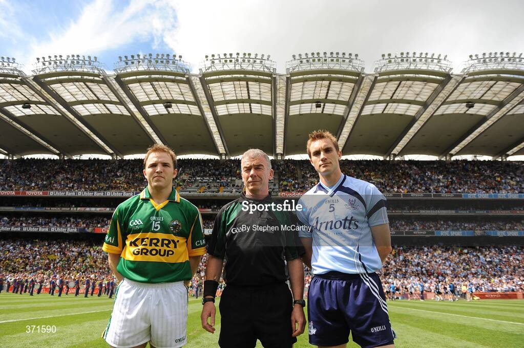 3 August 2009; Referee Pat McEnaney, Monaghan, with Kerry captain Darran O'Sullivan and Dublin captain Paul Griffin ahead of the game. GAA Football All-Ireland Senior Championship Quarter-Final, Dublin v Kerry, Croke Park, Dublin. Picture credit: Stephen McCarthy / SPORTSFILE