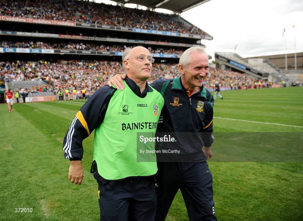 9 August 2009; Meath manager Eamon O'Brien is congratulated after the game. GAA Football All-Ireland Senior Championship Quarter-Final, Meath v Mayo, Croke Park, Dublin. Picture credit: Stephen McCarthy / SPORTSFILE