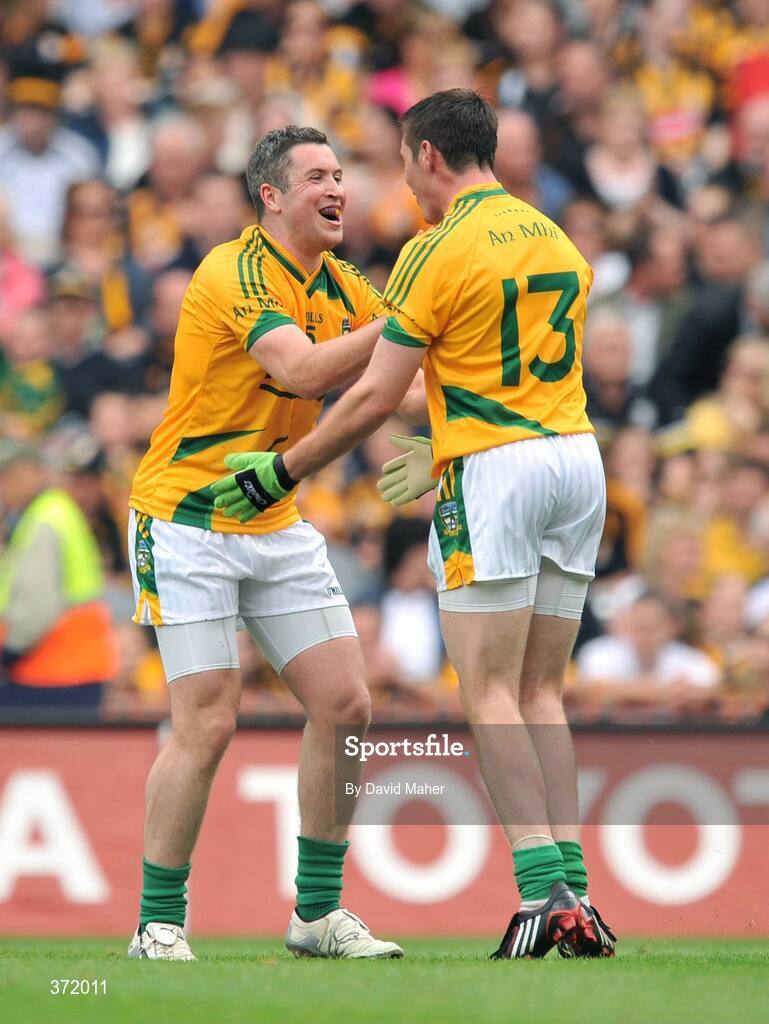 9 August 2009; Meath's Cian Ward, left, and David Bray celebrate at the end of the game. GAA Football All-Ireland Senior Championship Quarter-Final, Meath v Mayo, Croke Park, Dublin. Picture credit: David Maher / SPORTSFILE